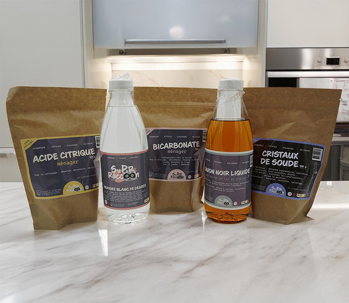Mon kit de base est une solution complète, économique et écologique pour entretenir votre intérieur, votre linge et vos extérieurs sans produits chimiques. Composé de 5 ingrédients naturels, ce kit vous permet de réaliser des dizaines de recettes maison pour nettoyer, désinfecter, détacher, dégraisser et entretenir durablement votre environnement.